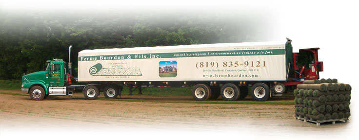 Our three semi-trucks all equipped with land forklifts are simply awaiting your order. Our forklifts permit us to deliver your sod directly on your property when accessible. The forklifts are also equipped with forks specially designed to carry the sod only, without having the need of a palette underneath.